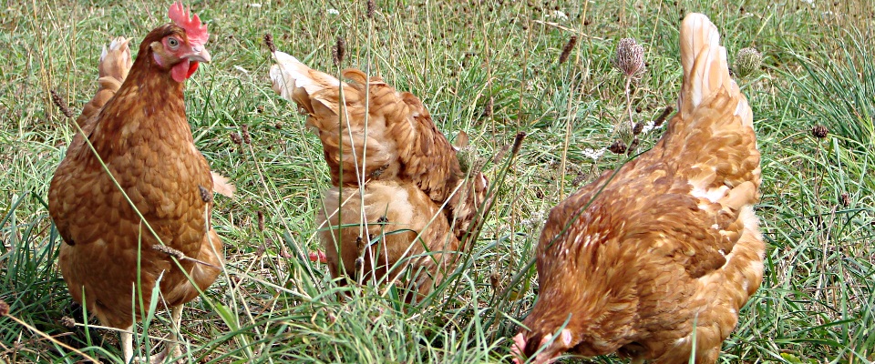 Le bien être de nos poules pondeuses justifie notre choix de l’élevage en plein air. Nos poules sont très matinales, elles pondent dès l’aube et disposent ainsi de toute la journée pour picorer, courir, gratter le sol dans le vaste parc herbeux mis à leur disposition.